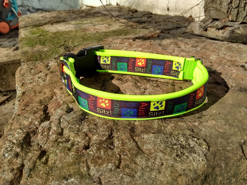 Trotz hochwertiger Materialien und sorgfältiger Verarbeitung ist dieses Hundehalsband nicht unverwundbar und der Stoff könnte beim Toben mit anderen Hunden oder durch v.a. dornenhaltiges Gebüsch beschädigt werden. Das wäre doch schade um ein so schönes Hundehalsband.