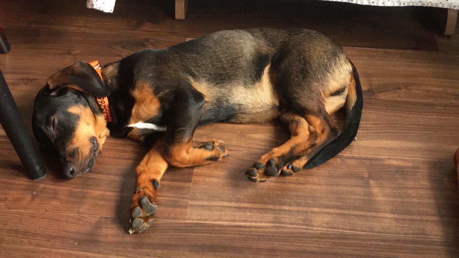 An die Hündin des Hauses hat er sich sofort gewöhnt – er ist traurig, wenn sie die Wohnung ohne ihn verlässt.