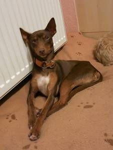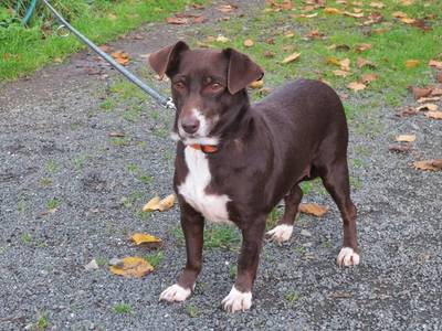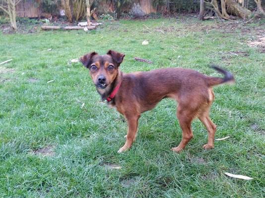 Lustig und freundlich. Das ist unser Schnutchen. Sie ist eine dunkelbraune Mischlingshündin mit weißem Brustfleck, geboren 10.12.2014, 31 cm „groß“ und wiegt 5,5 kg. Sie hat eine Topfigur, besteht fast nur aus Muskeln. Sie hat wunderschöne ganz große dunkle runde Augen und süße Klappöhrchen. Ihr Fell ist ganz kurz und zart, also sehr pflegeleicht. Schnutchen hat einen Unterbiss, was ihr ihren Namen eingebracht hat. Sie ist superlieb, liebt es zu spielen und im Garten zu toben, genießt aber auch sehr das Schmusen mit dem Pflegefrauchen. Schnutchen ist sehr menschenbezogen und freut sich über jeden der die Tür rein kommt. Sie verträgt sich gut mit anderen Hunden und auch mit Katzen und hört auch gut. Im Auto fährt sie ganz brav mit. Im Haus verhält sie sich sehr brav und sie ist stubenrein. Wenn man sie anspricht wird direkt wild gewedelt. Schnutchen ist eine äußerst schöne Hündin. Und der Unterbiss verleiht ihr sogar das gewisse Extra. Rufen sie an um diese Hündin persönlich kennen zu lernen. Denn Schnutchen wünscht sich sehr eine eigene Familie.