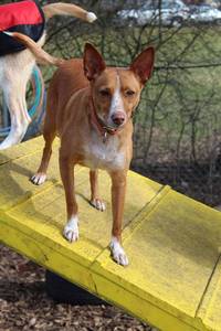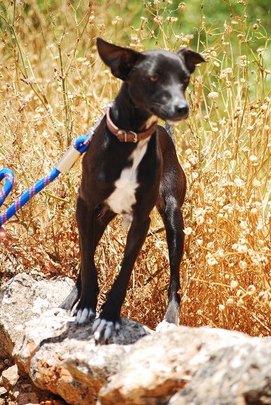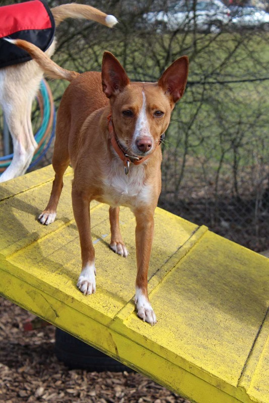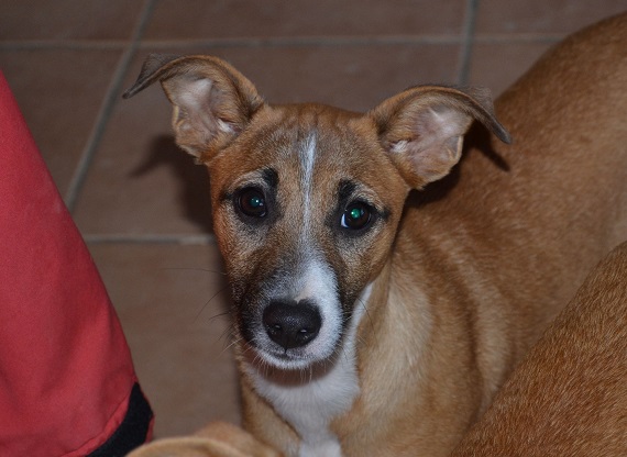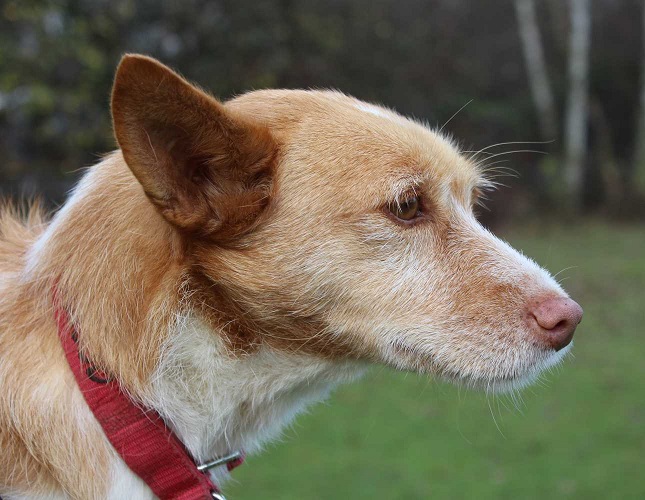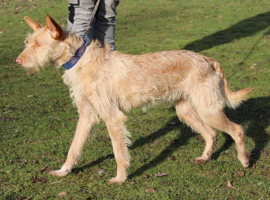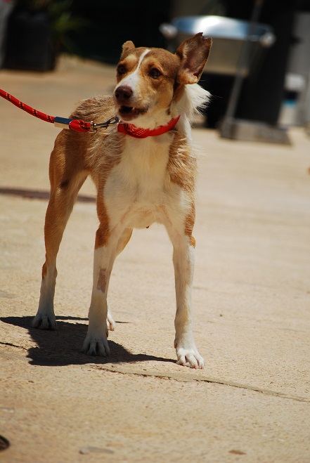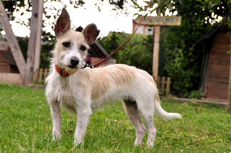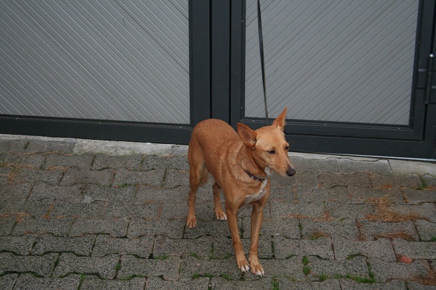 Unsere BANANA ist ein Sonnenschein, geboren 03/2014 und 42 cm hoch. Wenn man BANANA kennenlernt, geht einem das Herz auf. Ihrem Charme kann kaum jemand widerstehen. Sie dürfte ein Podengo-Mix sein, und dieses liebenswerte Wesen ist typisch für diese Rasse, es sind so wundervolle Hunde, in die man sich einfach verlieben muss. BANANA wohnt auf einer Pflegestelle mit zahlreichen anderen Hunden zusammen. Sie hat auch schon Katzen und Kinder kennen gelernt und ist mit allem gut Freund.