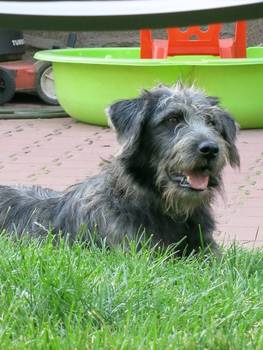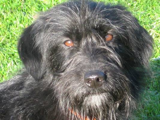 Mein Name ist Dolé und ich bin eine Labardor-Schnauzer-Mix Hündin. Den Schnauzer kann man wohl auch nicht leugnen, der ist wohl eindeutig zu sehen. Aber das macht ja nichts, denn man munkelt ja, dass Schnauzer sehr intelligent und lernwillig sind. Ich freue mich schon sehr hoffentlich bald eine eigene Familie zu haben die mit mir durch dick und dünn gehen so wie ich es auch tun werde. Meine jetzige Pflegefamilie ist vom ersten Tag an seid dem ich hier bin begeistert von mir. Zumindest haben sie das gesagt. Ich bin stubenrein, verstehe mich prima mit anderen Hunden und kann auch schon mit anderen Hunden alleine bleiben. Geboren bin ich 07/2010 und habe eine Schulterhöhe von ca. 52,0 cm. Natürlich bin ich auch kastriert, geimpft, gechipt und entwurmt. Zu meinem großen Glück fehlt mir jetzt nur noch das richtige, endgültige Zuhause.