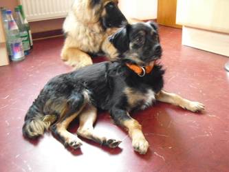 Dies ist unsere liebe und verschmuste DSH-Mix Hünidin Foxy. Sie ist am 10.06.2010 geboren und 47,0 cm. Foxy wohnt bei einem Paar das eine Hundetagesstätte betreut. Dort zeigt sie sich in der Hundegruppe neuer Hunde gegenüber anfangs eher skeptisch, nach kurzer Zeit duldet sie die anderen Hunde und mit ausgewählten speilt sie sogar.