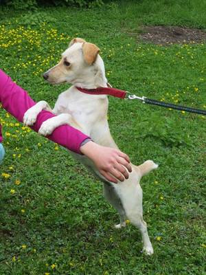 Sie ist ein Mischling, wurde am 26.07.2015 geboren, wiegt 10 Kilo und ist 45cm groß.Sie ist eine superliebe Hündin, die sich mit allem und jedem verträgt.Sie ist absolut kinderlieb, verträgt sich gut mit anderen Hunden und auch mit Katzen.Altersgemäß ist sie verspielt - da hat sie eine Riesenfreude dran!Und eine Schmusemaus ist sie - Kuschelfaktor garantiert! Ruft an und lernt sie persönlich kennen - es lohnt sich unbedingt.