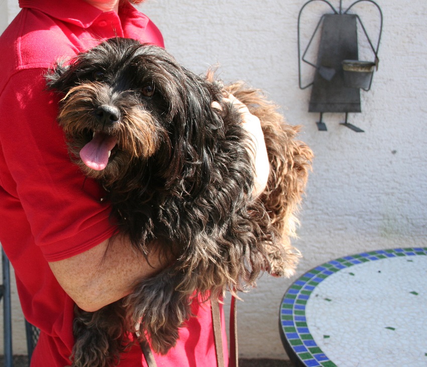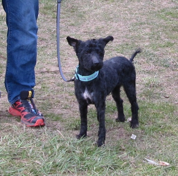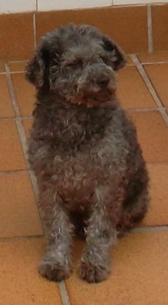 Poldi ist eine bezaubernde Pudel-Mix-Dame mit ca. 41cm und 11,5kg. Geboren ist sie etwa 03/2011. Sie wurde in sehr vernachlässigtem Zustand aufgegriffen, dass Fell lang und verfilzt. Nun wurde sie gebadet und geschoren und man sieht, welch Schönheit dabei heraus kam! Ihre schwarzen Locken bringen ihre schönen gold-braunen Augen so richtig zur Geltung. Und so lieb, wie sie mit diesen Augen schauen kann, ist sie auch. Sie ist nur nett und absolut unkompliziert, verträgt sich mit allem und jedem, geht freundlich auf jeden Menschen zu und freut sich über jede noch so kurze Streicheleinheit. Dazu ist sie auch stubenrein, kann (derzeit mit anderen Hunden) alleine bleiben, fährt gut im Auto mit, geht super an der Leine und ist katzenverträglich. Sicherlich ist diese verschmuste und verspielte Hündin auch gut für Hundeanfänger geeignet. Natürlich ist Poldi auch geimpft, gechipt, entwurmt und kastriert.