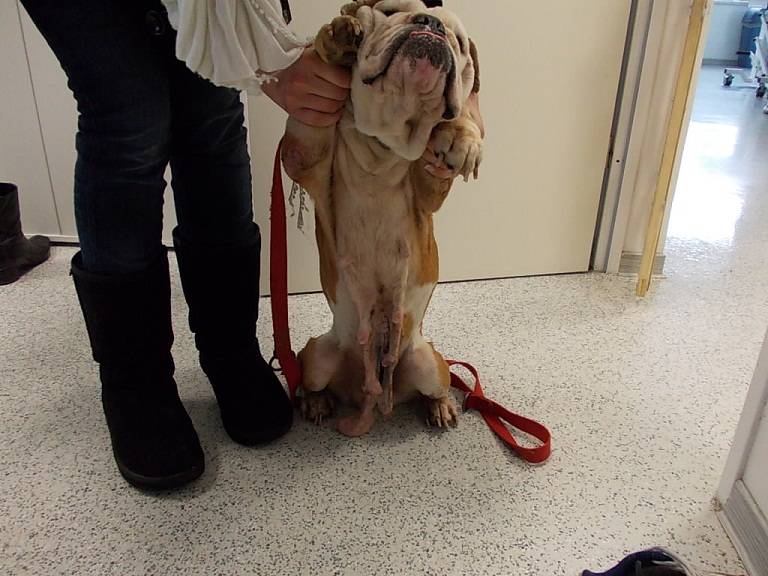Sie wurde vor dem Tierheim ausgesetzt. Zusammen mit einem Sack Futter auf dem stand wie sie heißt und wie alt sie ist.