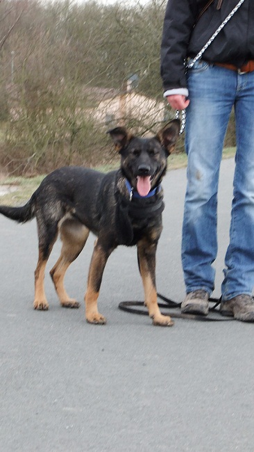Zu Menschen ist sie sehr freundlich, verschmust und sehr anhänglich. Ordentlich an der Leine gehen muss sie noch lernen. Treppen laufen findet sie noch unheimlich, aber das sollte kein großartiges Problem darstellen. Wenn sie einen Menschen hat, dem sie vertraut, folgt sie ihm auch über gruselige Treppen.