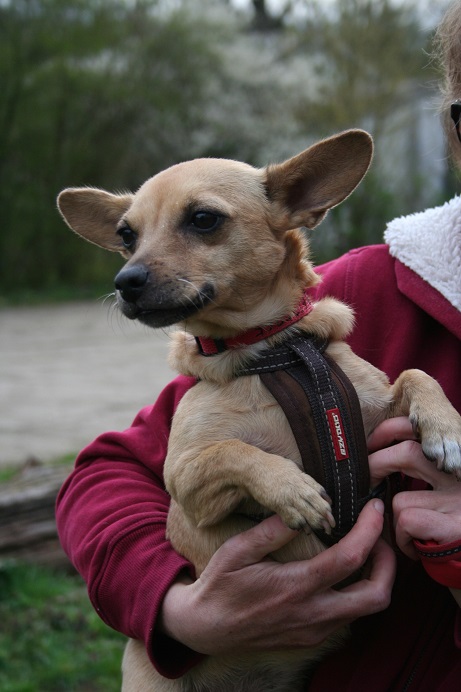 Balsa, geboren am 01.08.2008, ist eine schüchtern, ca. 30 cm kleine Hündin mit großen Ohren und hübschen Rehaugen, die leider von ihrem Frauchen weggegeben wurde, da diese einen neuen Freund hat, der sich nicht mit Balsa anfreunden wollte. Fremden gegenüber ist Balsa auch erstmal vorsichtig, aber mit etwas Ruhe und Geduld fasst sie schnell Vertrauen, man darf sie nur nicht bedrängen. Selbst wenn sich die kleine Maus bedrängt fühlt, wird sie allerdings nie agressiv, sondern versucht lediglich der Situation zu entziehen. Daher mag sie es z.B. nicht, wenn man sich über sie beugt (was eignetlich kein Hund mag) oder sie hochnehmen will, daran wird aber fleißig gearbeitet mit bereits großen Fortschritten. In der Wohnung sind ihr generell solche Situationen unbehaglicher als im Freien. Beim gassi gehen zeigt sie sich jeden Tag mutiger, obwohl ihr die Innenstadt und Zugfahren eher suspekt sind, folgt sie ihrer Bezugsperson anstandslos. Auch läßt sie sich in unsicheren Situationen noch gut über Futter "manipulieren" und ist darüber gut zu erziehen. An der Leine läuft sie bereits super mit. In der Wohnung ist sie ein absoluter Schatz! Verschmust, unauffällig, macht nichts kaputt, bleibt alleine... Was will man da mehr? Auch Autofahren mag sie gerne und hundeverträglich ist sie. Anderen Hunden gegenüber zeigt sie sich als freundlich und eher unterwürfig. Ein Zweithund, an dem sie sich orientieren kann, wäre bestimmt toll, ist aber kein Muss. Wer gibt dieser tollen Maus ein neues Zuhause, aus dem sie hoffentlich nie mehr so einfach abgeschoben wird? Natürlich ist Balsa kastriert, geimpft, gechipt und entwurmt.