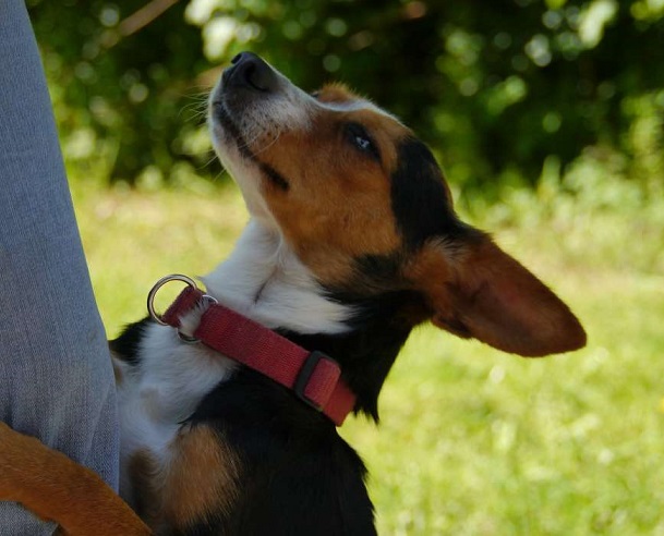 Sie geht vorbildlich an der Leine, gerne mit flottem Schritt und wedelt stets fröhlich dabei.
