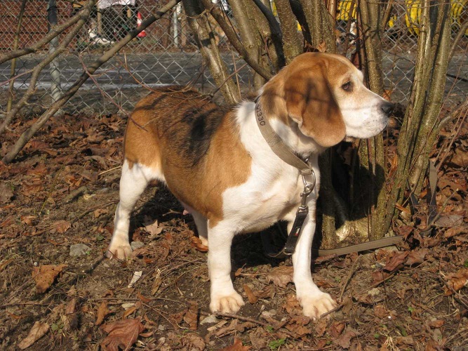 Bei ca. 35 cm Schulterhöhe wiegt sie ca. 15 kg.