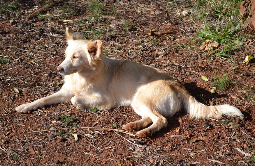 Selbst für kürzere Zeit ohne andere Hunde alleine bleiben kann Tamira schon. Sie jammert nicht dabei und macht auch nichts kaputt.